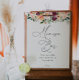 Baby shower Momosa-teken met waterverf Bourgogne, roze en oranje bloemen om de tijd voor thee-collectie te evenaren.