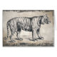 Decoratieve illustratie van een Bengaalse tijger op een grijze achtergrond.