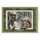 Prachtige digitale kunstfoto met twee tijken met een 3D-effect die lijken uit het afbeelding lijst te springen. Achtergrond gelaagd met giraf en zebra. Geweldige dierenkunst maakt een geweldig cadeauidee voor wildlife liefhebbers.