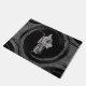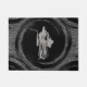 Een leone grim Reaper staat in een zwarte zwembad omringd door een zilvergrijze achtergrond.