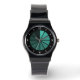 Silicone Strap Mannen's Watch bedrukt met Time Traveller Watch Face With Light To Dark Turquoise kleuren ontwerpillustratie van TheFabricSeal op Zazzle.com #Zazzle Made https://www.zazzle.com/store/thefabricseal. Het ontwerpconcept is geïnspireerd op een zonnewijzerplaat en het veranderen van kleuren en licht als het helderste van onze zon verandert wanneer onze aarde draait en ons daglicht geeft aan het nachtlicht. Elke Watch Face heeft 1 tot 12 uur secties en begint met de belangrijkste lichtere kleur en wordt donkerder als een vervagend ombre licht kleur effect naarmate de tijd verstrijkt. Wit, Geel, Goud, Sinaasappel, Rood, Roze, Heet roze, Violet, Paarse, Baby Blue, Blue, Turquoise, Green, Chartreuse Green werden allemaal gebruikt als de eerste sectie primaire kleur om het ombre vervagen proces te starten. Bekijk ook al onze andere cool uitziende selectie van ronde stijlproducten in deze spannende serie. Introductie van het siliconen zwarte horloge, een eigentijds uurwerk dat zowel stijl als veelzijdigheid uitstraalt. Dit horloge is vervaardigd met een duurzame siliconenband en garandeert comfort voor dagelijks draag gebruik. Het stijlvolle zwarte ontwerp voegt een vleugje verfijning toe, waardoor het de perfecte accessoire is voor elke gelegenheid. Bedankt voor het kiezen, kijken en winkelen bij TheFabricSeal.