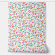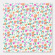 Tiny floral pattern wallpaper. Green stems and leaves with pink and orange flowers on an off-white background.