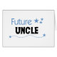 Toekomstige oom T-shirts, mokken, magneten, kaarten, knoppen, hapjes, sleutelhangers en andere toekomstige oomkleding en cadeautjes met een blauw en zwart design en een stervormig design.