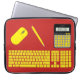 Dit ongewone en kronkelige Hoesje van de laptop is voorzien van een computertoetsenbord met gele toetsen en rode letters, een gele muis, een rekenmachine met gele toetsen en een rode, billende en gele pen. De achtergrond en de naamplaattekst kunnen worden veranderd om uw eigen vereisten aan te passen. Design van KPW_Graphics.
