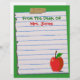 Top 10 Letterhead Uitzichten Zazzle Award! Pas dit aangepaste letterhoofd aan, "Van het bureau van", met om het even welke naam op dit leuke, verscheurde, beklede notitieboek papier dat aan een groene achtergrond met een rode appelillustratie op de bodem wordt getapt. Of laat de tekst gewoon buiten. Verander gemakkelijk de achtergrondkleur en de tekststijl en de kleur. Klik op "Aanpassen" en vervolgens op "Bewerken" en "Achtergrond" om de kleur te wijzigen. Maakt een groot aangepast cadeau voor docenten. Geef vandaag een persoonlijk tintje!