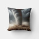Een tornado wervelt heftig boven een tarweveld met donkere wolken van storm die boven het hoofd opdoemen en rondvliegend puin