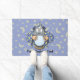 Oude tovenaar met blauwe cape en kristalmagische bal. De gezichtfoto van het gebruik om aan te passen. Aangepaste tekst.
