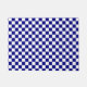 Deze deurmat heeft een klassiek donkerblauw en wit dambordpatroon.