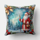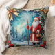 Sinterklaas, gekleed in klassieke rode kledij, staat te midden van een besneeuwde achtergrond omringd door feestelijke decoraties, een gloeiende kerstboom en een magisch winterlandschap.