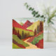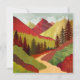 Een abstract landschap met unieke texturen met een berglandschap met een wandelpad en bomen en prachtige zonnestralen in de kleuren rood, karmozijnrood, geel en groen.