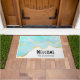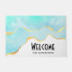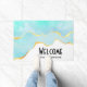 Welkom doormat met een serene summery design. Turquoise/aqua green waterverf afbeelding met een golvende faux gouden grens. Elegant en mooi.