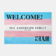Deze welkome vormgeving is voorzien van een prachtige Transgender vlag met een strandfotografie achtergrond. Aan de ene kant staat "Welkom" en aan de andere kant staat "Dag!". Het wordt ook gepersonaliseerd met uw familienaam of een kort bericht in het centrum. Dit is een groot geschenk voor een vriend of familielid die transgender is.