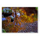 Oorspronkelijke foto van de natuur van een boom met briljante gouden bladeren, gereflecteerd in een vijver, met stenen die de scène vormden. Lakeside Garden Center, Lake Merritt, Oakland California
