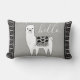 Trendy lumbale kussen met een vet zwart Aztec geïnspireerd patroon aan de zijkanten en een heerlijk schattige witte lama-schets in het midden met het woord "hallo".
