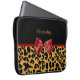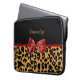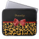 Trendy Black en Gold Leopard Print Red Ribbon Bow Laptop Sleeve