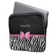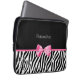 Een trendy zwarte en witte zebra printpatroon Laptophoes van 13 inch met een schattige roze lintboog omwikkeld als een cadeau. Personaliseer u door jouw naam toe te voegen. Perfect cadeau voor een meisje van tien meisjes!