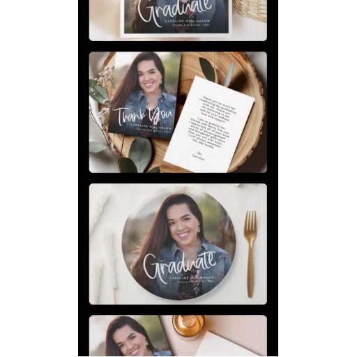 Een trendy casual script foto afstuderen dank u cadeau label. De foto is alleen voor plaatsingsdoeleinden en kan worden vervangen door elke foto van uw keuze. Pas het bericht op de achterkant van het cadeau-label aan creëer een persoonlijk bedankbericht voor uw afstuderen gasten.