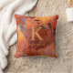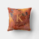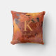 Trendy Chic Terracotta Roest Sinaasappel Bruin Monogram Sierkussen met een warm patroon van herfstaarttinten in roesttinten, terracotta, saffraangeel, roos goud en klei. Perfect voor uw trendy esthetische en stijlvolle levensstijl. Voeg eenvoudig jouw naam en monogram toe voor een modern design!
