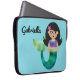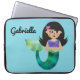 Trendy Faux Foil Latino Mermaid Personalized Kinder Laptop Hoesje. blauwe achtergrond zoals de oceaan. Schattige kleine zeemeermin met bladgroene staart, paarse tanktop en paarse en roze zeemijver in haar donkerzwarte haar. Personaliseer met naam in manuscript. Bewerken om lettertypekeuzen te wijzigen. Coördinatie van mermaid-, merman- en piratenartikelen en partijbenodigdheden. Contact voor de verzoeken van de douaneorde. Zeemeermin, oceaan, het leven van het zee de design. ww.SamAnnDesigns.com