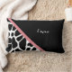Een trendy zwarte en witte giraf druklumbale kussen met een rooskleurige roze diagonale streep. Pas dit elegante ontwerp van dierenafdrukken aan door jouw naam toe te voegen. Pas roteerroze aan de achterkant aan met uw eigen aangepaste kleur.