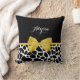 Een trendy zwarte en witte girafdruk gooit kussen met een korrelig goudgeel lint gebonden in een oogwenk. Pas dit stijlvolle ontwerp van dierlijke afdrukken aan door jouw naam toe te voegen. De omgekeerde kant heeft een zwart-wit girafpatroon. Platte afbeelding, geen echte boog.