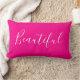 Helderroze, minimalistische trendy eenvoudige moderne kussen met de tekst "Mooi" in elegant lettertype. U kunt de tekst behouden of u kunt uw eigen douanetekst schrijven.