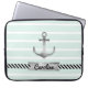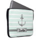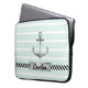 Trendy Mint Green Stripes Nautical Anchor Custom Laptop Sleeve