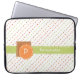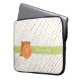 Een trendy gestippelde laptophoes van het lijnpatroon met neutrale rode, bruine en groene strepen tegen een witte achtergrond, voorzien van een geometrische vormvierkant en cirkelvormig ontwerp. Personaliseer door jouw naam en initialen toe te voegen. Perfecte mode voor de moderne en stijlvolle vrouw.