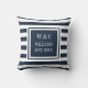 Trendy Monogram Navy Blauw Wit Streep Kussen