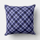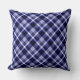 Een 20 x 20 inch werpkussen met een prachtig vormgegeven vormgeving van het platte patroon in blauw van de marine.