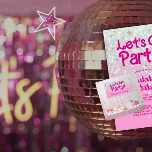 Trendy Pink Let's Go Party verjaardagsuitnodiging. Personaliseer met je eigen gegevens!