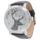 Stijlvol schuine hertenprofiel en grijs gestreept horloge met elegant monogram.