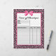 Maak het bestellen van klanten eenvoudig met deze schattige en trendy roze en zwarte bladzijdegedrukte boutique bestelformulieren, die zijn voorzien van een korrelig, roze, roze lintontwerp dat is gebonden aan een schattige boeg. Personaliseer u door de naam van uw winkel of online winkel toe te voegen. Deze stijlvolle sjablonen van bestelformulieren hebben een plaats voor een productbeschrijving, hoeveelheid en verkoopprijs. Vlak gedrukt afbeelding, geen echt lint.