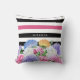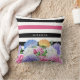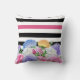 Een trendy roze en zwarte florale en strepen vierkant werpen kussen met een kleurrijke reeks bloemen en brede horizontale strepen. Je zult zeker aandacht trekken wanneer je deze trendy en schattig design personaliseert door jouw naam toe te voegen.