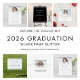 Trendy Silver Glitter Welkom Graduation Party. Elegant manuscript met swashes en faux glitter grenzen voor dit randontwerp.