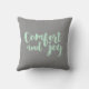Trendy kleuren van mintgroen en grijs in dit vakantiekussenontwerp met een subtiel waterverf rendier in mintgroen op een decoratief wit ovaal lijst en een grijze achtergrondkleur. De achterzijde van het kussen heeft de tekst "Comfort and Joy" in een modern lettertype ontwerp, ook in mintgroen. Deze kleuren zijn een mooi alternatief voor de traditionele rode en groene kleuren die met Kerstmis worden gebruikt en zullen er ook geweldig uitzien tijdens de winter.