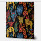 Etnisch, tribal behang met giraffen, maskers en andere safari dieren