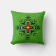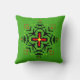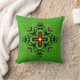 This unique hand-drawn mandala features a rustic, artistic charm with natural variations in the pattern alignment. Detailed with bold Tribal-inspired patterns and vivid colors on a vibrant green background, this round pillow adds a mysterious and energetic touch to any seating area.