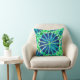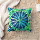 Gooi kussen in een moderne tribale/etnische afdruk van geneste mandalawielen en driehoeken, met een tropisch gevoel - tinten diep kobalt blauw, turquoise, cerulean blauw, aqua, jade groen en chartreuse, voorzien van wit