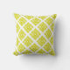 Een geometrische tribal sleutel en hoekig uitgesneden stijl patroon kussen in helder licht lime groen en wit. Ontworpen door Sarah Trett. Zou er geweldig uitzien in een slaapkamer, lounge of tuinkamer.