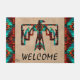 Personaliseer en fleur je huis op met deze unieke "One of a Kind" Tribal Thunderbird Welkom Deurmat! Het beschikt over een Zuidwestelijke Tribal Thunderbird op een Tan achtergrond...Omgeven door een Zuidwestelijke grens in Turquoise, Sinaasappel en Zwart! Dit is een origineel kunstontwerp van kunstenaar Kerry Miller.