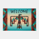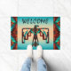Personaliseer en fleur je huis op met deze unieke "One of a Kind" Tribal Thunderbird Welkom Deurmat! Het beschikt over een zuidwestelijke Tribal Thunderbird op een turquoise en Oranje Sunset achtergrond...Omgeven door een zuidwestelijke grens in turquoise, Sinaasappel en zwart! Dit is een origineel kunstontwerp van kunstenaar Kerry Miller.