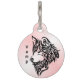 Ingewikkeld patroonontwerp van een eenzame wolvenkop met contactgegevens van het licentienummer en de naam van de huisdieren