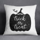 Viel Halloween in stijl met deze "trick or treat"-seizoenswerper en gooi kussens uit met modern script dat op een zwarte rustige, getextureerde pompoen staat.