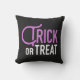Voeg een spookachtige touch toe aan uw huis met een schattig Trick or treat Halloween kussen. Het kussen is voorzien van paarse en witte tekst met moderne typografie. Voeg tekst of een afbeelding toe aan creëer, een meer aangepast ontwerp.