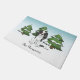 Destei's originele cartoon illustratie van een schattige driekleurige kleerkleur Cavalier-rashond. De hond wordt in een winterscène geplaatst. In de scène sneeuwt het op de achtergrond en achter de hond zijn er drie groene vuurbomen. De bomen hebben wat sneeuw op hen. De achtergrond is een lichtblauw tot witte gradiënt die dit ontwerp geeft dat de ijskoude winterdag eruit ziet. Er is ook een personaliseerbaar tekstgebied voor een naam.