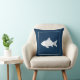 Decoratief gooien van kussen met witte vis op de blauwe achtergrond van de marine. Zie alle coördinerende design bij Sandy Feet Studios.