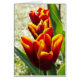 Drie heldere tulpen genieten van de lenteszonneschijn.