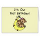 Triplets First Birthday T-shirts, bodysuits, canvas tassen, knopen, magneten, kaarten, en meer met twee jongens en een meisje aap en een grote gele banaan!