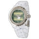 Trommelset~Rollend blad Muziek~Gold/Groene achterg Horloge
